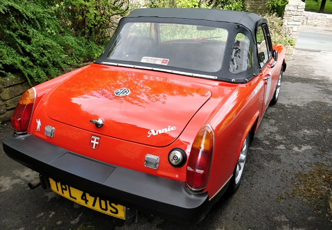 Annie. Born Oct 1977. Bought August 2015. The first MG. Vermilion in colour. Slightly modified engine